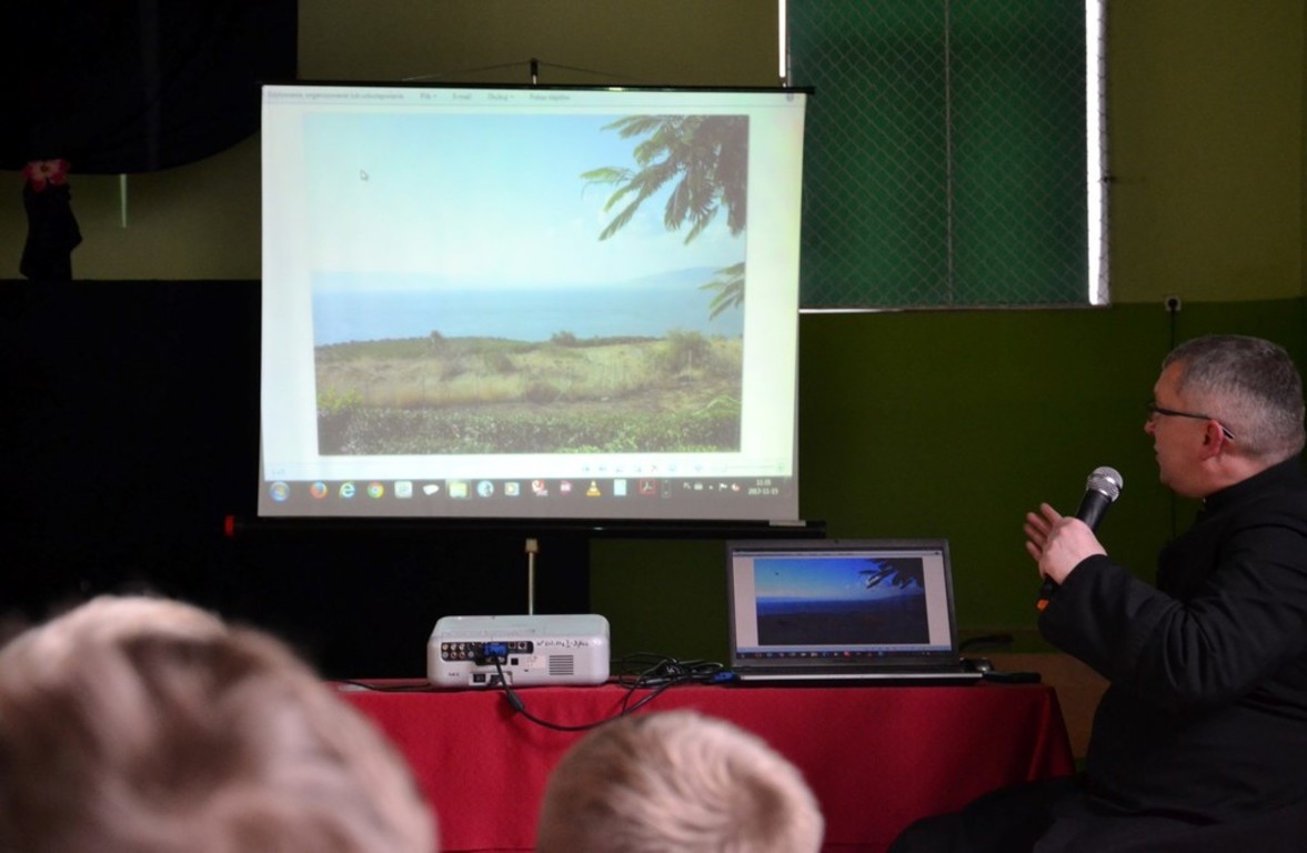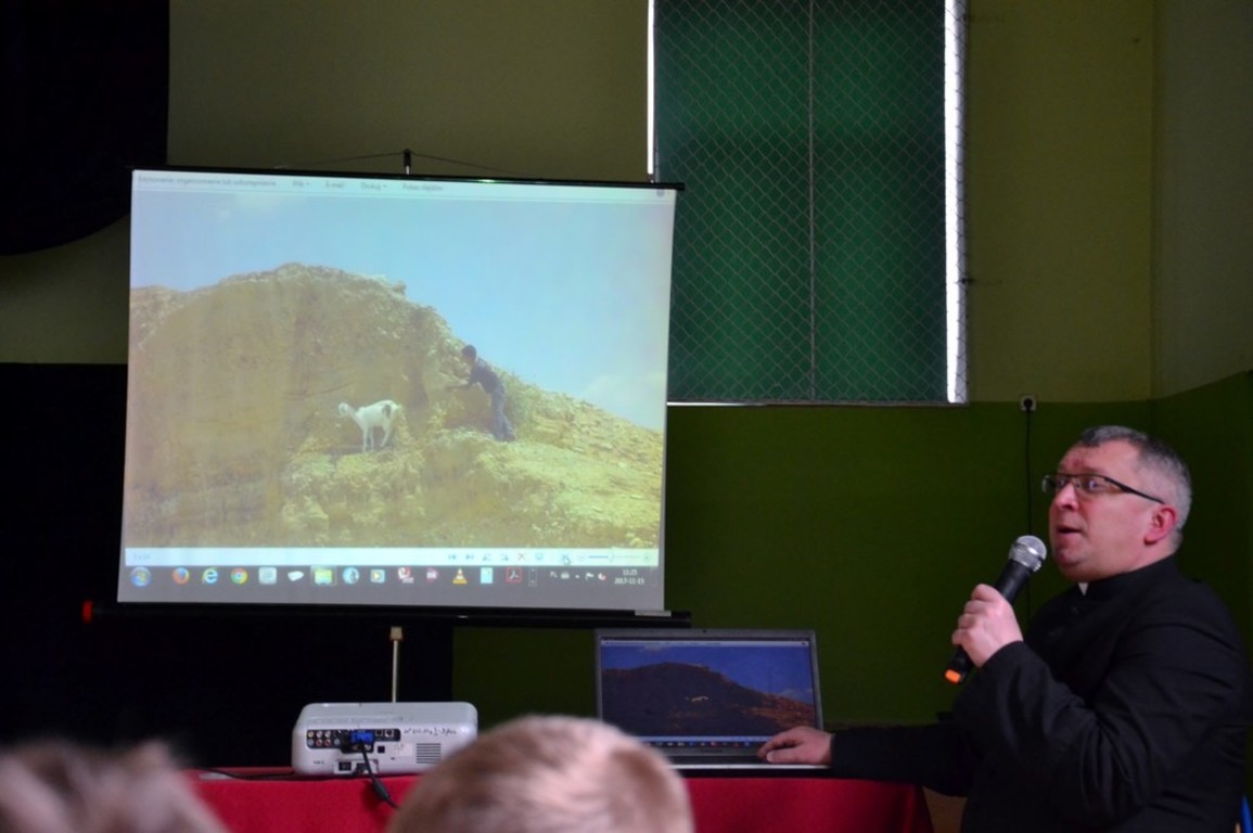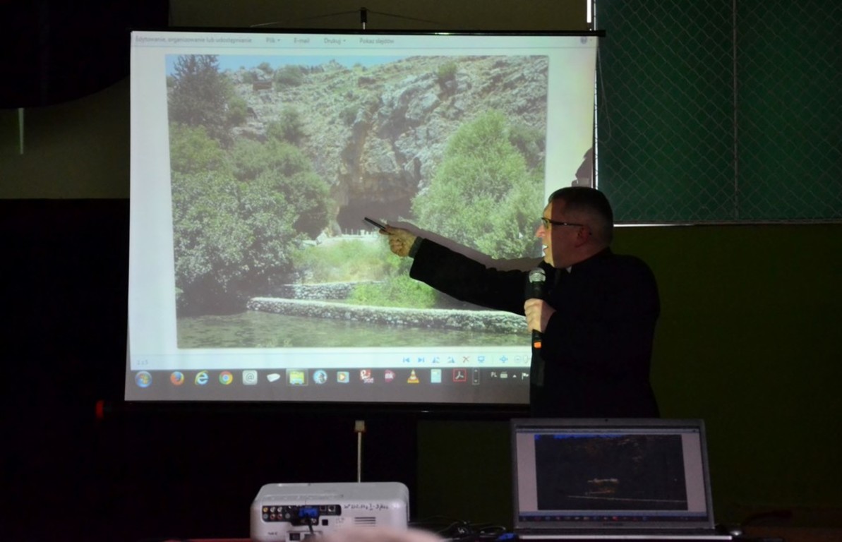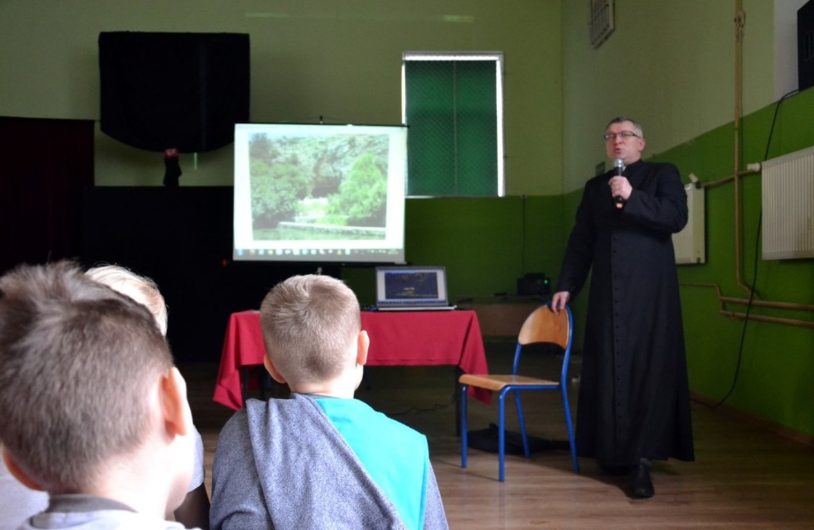 W naszej szkole w listopadzie 2017 roku o swojej podróży do Ziemi Świętej opowiedział Ksiądz Proboszcz Parafii Boczki Mariusz Szmajdziński. Przepiękna opowieść o Nazarecie, Betlejem, Jerozolimie i Jordanie poparta była prezentacją zdjęć z tamtych miejsc. Przecież w/w miejsca są znane ze stron Pisma Świętego każdemu z nas. Właśnie tam dokonały się wielkie wydarzenia zbawcze. Zostały one uświęcone obecnością Jezusa Chrystusa. Ksiądz Proboszcz zwracał uwagę w swojej prelekcji na krainy geograficzne i zabytki tamtych miejsc. Czas przeżyty w Ziemi Świętej został utrwalony w albumie pt; ZIEMIA ŚWIĘTA wg ewangelii Świętego Łukasza. Album zawiera 24 rozdziały i mnóstwo zdjęć. Album jest przygotowany jako przegląd różnych miejsc wspomnianych w Ewangelii. Bardzo dziękujemy księdzu Proboszczowi za ciekawe spotkanie.