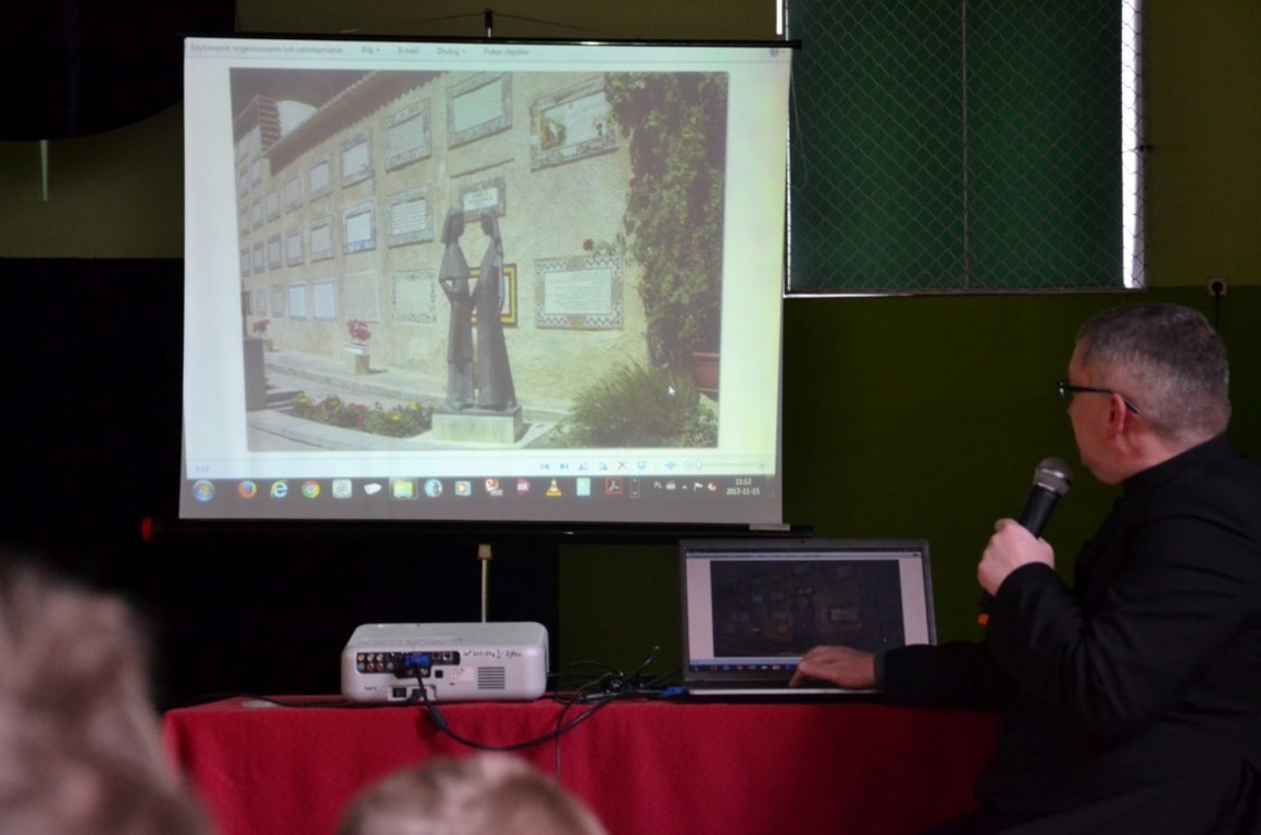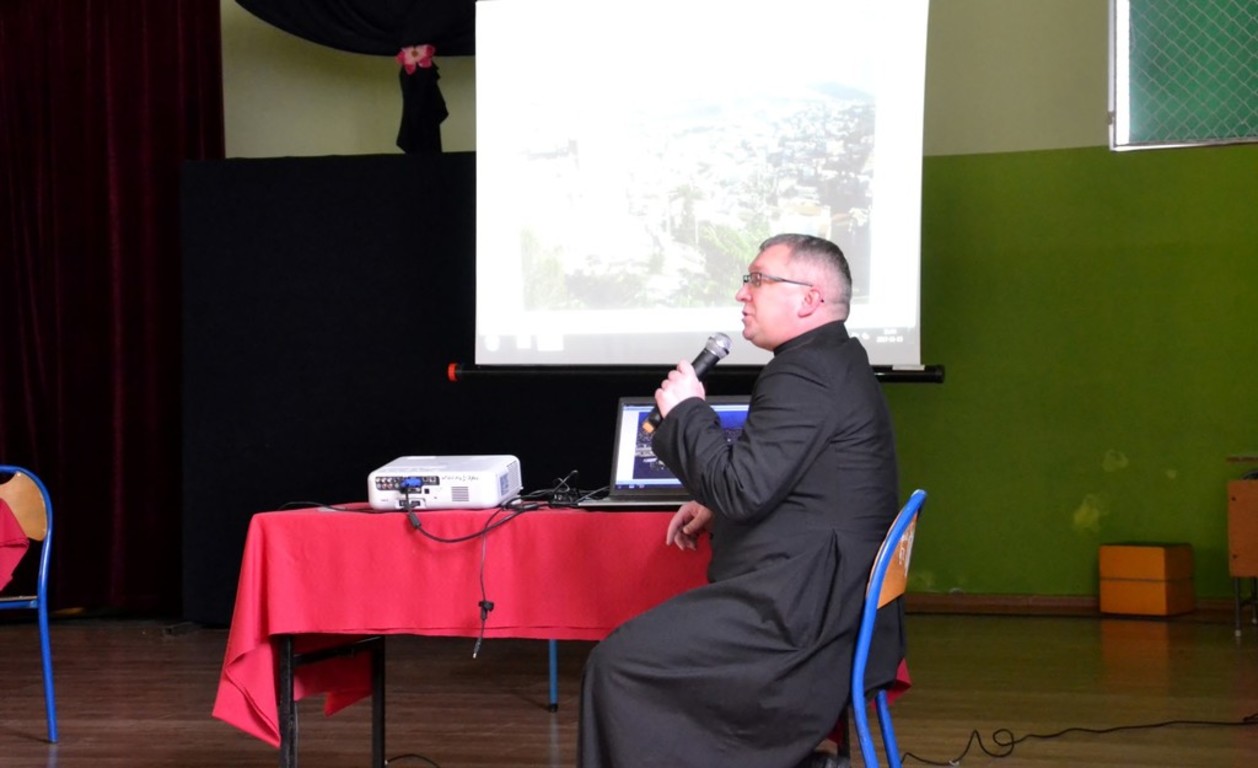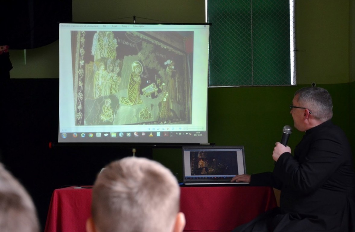 W naszej szkole w listopadzie 2017 roku o swojej podróży do Ziemi Świętej opowiedział Ksiądz Proboszcz Parafii Boczki Mariusz Szmajdziński. Przepiękna opowieść o Nazarecie, Betlejem, Jerozolimie i Jordanie poparta była prezentacją zdjęć z tamtych miejsc. Przecież w/w miejsca są znane ze stron Pisma Świętego każdemu z nas. Właśnie tam dokonały się wielkie wydarzenia zbawcze. Zostały one uświęcone obecnością Jezusa Chrystusa. Ksiądz Proboszcz zwracał uwagę w swojej prelekcji na krainy geograficzne i zabytki tamtych miejsc. Czas przeżyty w Ziemi Świętej został utrwalony w albumie pt; ZIEMIA ŚWIĘTA wg ewangelii Świętego Łukasza. Album zawiera 24 rozdziały i mnóstwo zdjęć. Album jest przygotowany jako przegląd różnych miejsc wspomnianych w Ewangelii. Bardzo dziękujemy księdzu Proboszczowi za ciekawe spotkanie.