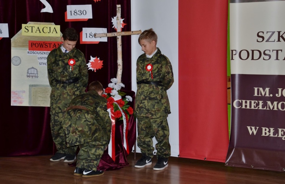 Pod takim hasłem 8 listopada 2019r. przebiegały w naszej szkole obchody Narodowego Święta Niepodległości. Uroczystość rozpoczęła się o godzinie 11.11 wspólnym odśpiewaniem hymnu państwowego, co było odpowiedzią na akcję MEN „Szkoła do hymnu”. Prowadzący kolejarze wprowadzili społeczność szkolną w atmosferę kolejnych trudnych okresów w historii Polski oraz pokazali męstwo jakim wykazał się naród, aby odzyskać utraconą wolność. Pociąg historii zatrzymywał się na czterech stacjach: NIEWOLA, POWSTANIA, I WOJNA ŚWIATOWA, WOLNOŚĆ. Widowisko pokazało, jak niewiele trzeba by stracić wolność, a jak dużo by ją odzyskać. Uczniowie w swym wystąpieniu podkreślili, że dzięki ofiarności naszych przodków Polska powróciła na mapę Europy, a my mamy dziś szczęście dorastać w wolnym kraju. Aby oddać cześć wszystkim, którzy swe życie oddali za ojczyznę, zapalony został symboliczny znicz pamięci. Atmosferę tych trudnych dla narodu polskiego chwil w wystąpieniu uczniów podkreślała poezja i pieśni patriotyczne. Akademię przygotowała klasa szósta pod okiem wychowawcy – pana Tomasza Kłosińskiego, polonisty – pani Alicji Bombrych i nauczyciela muzyki - pani Katarzyny Wojciechowskiej.