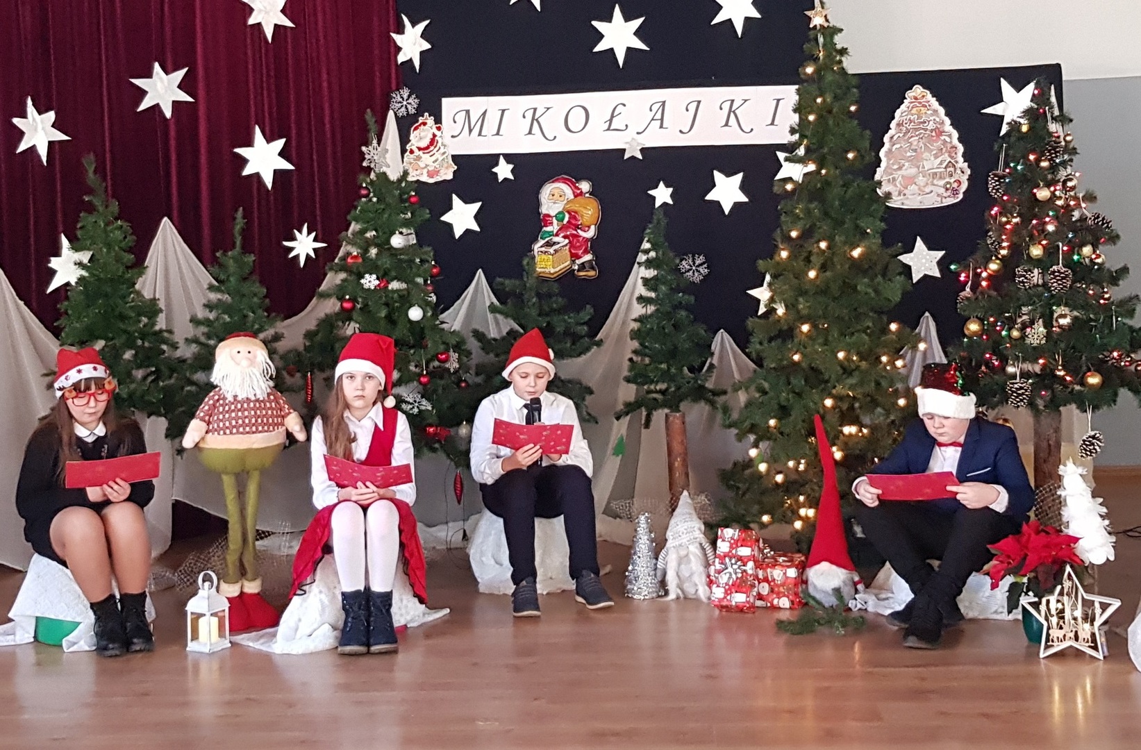 Uczniowie klasy V wykazali się pomysłowością i z pomocą pań Doroty Osowskiej oraz Katarzyny Włodarskiej przygotowali szczególny prezent dla wszystkich dzieci – film[1] ukazujący genezę mikołajek oraz sposoby ich celebrowania, nie zapomnieli również o zgodnych z tematem wierszach i życzeniach. Piątoklasiści zadbali także o odpowiednią oprawę świątecznego przedsięwzięcia, w związku z tym salę wypełniły przepięknie udekorowane choinki, krasnale, skrzaty, gwiazdki, a każdy z uczniów wcielił się w postać Mikołaja lub Mikołajki.