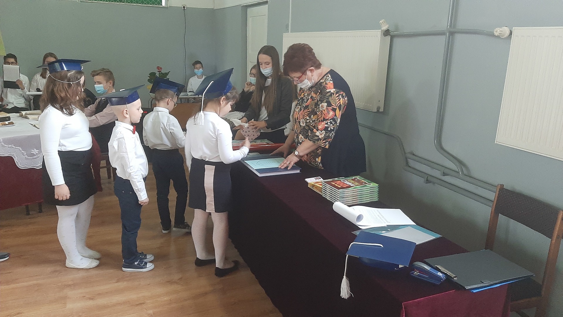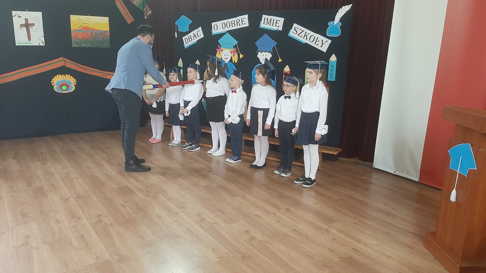 Po złożeniu ślubowania Pan Dyrektor Tomasz Kłosiński dokonał symbolicznego pasowania na ucznia oraz wręczył każdemu pierwszakowi pamiątkowy dyplom.