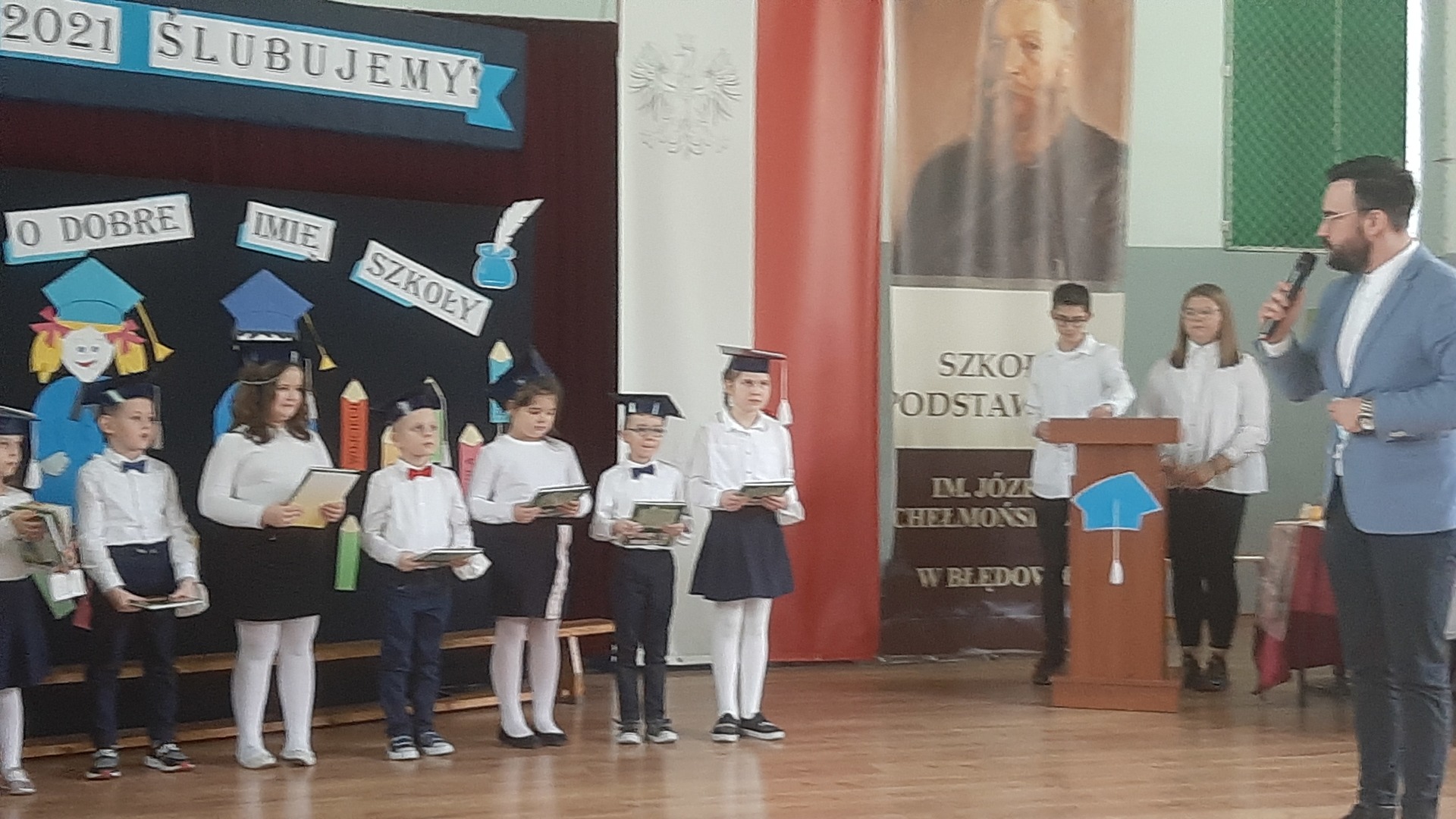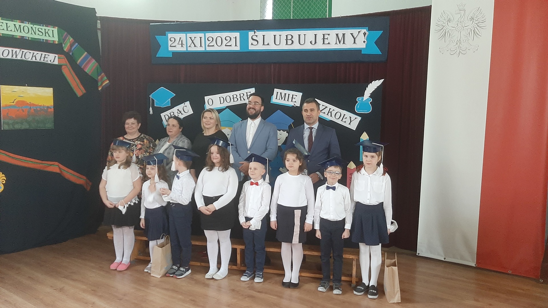 W bardzo podniosłej atmosferze, przed Pocztem Sztandarowym, pierwszoklasiści ślubowali być dobrymi Polakami, pilnymi uczniami, rzetelnie wypełniać obowiązki oraz godnie reprezentować swoją szkołę.
