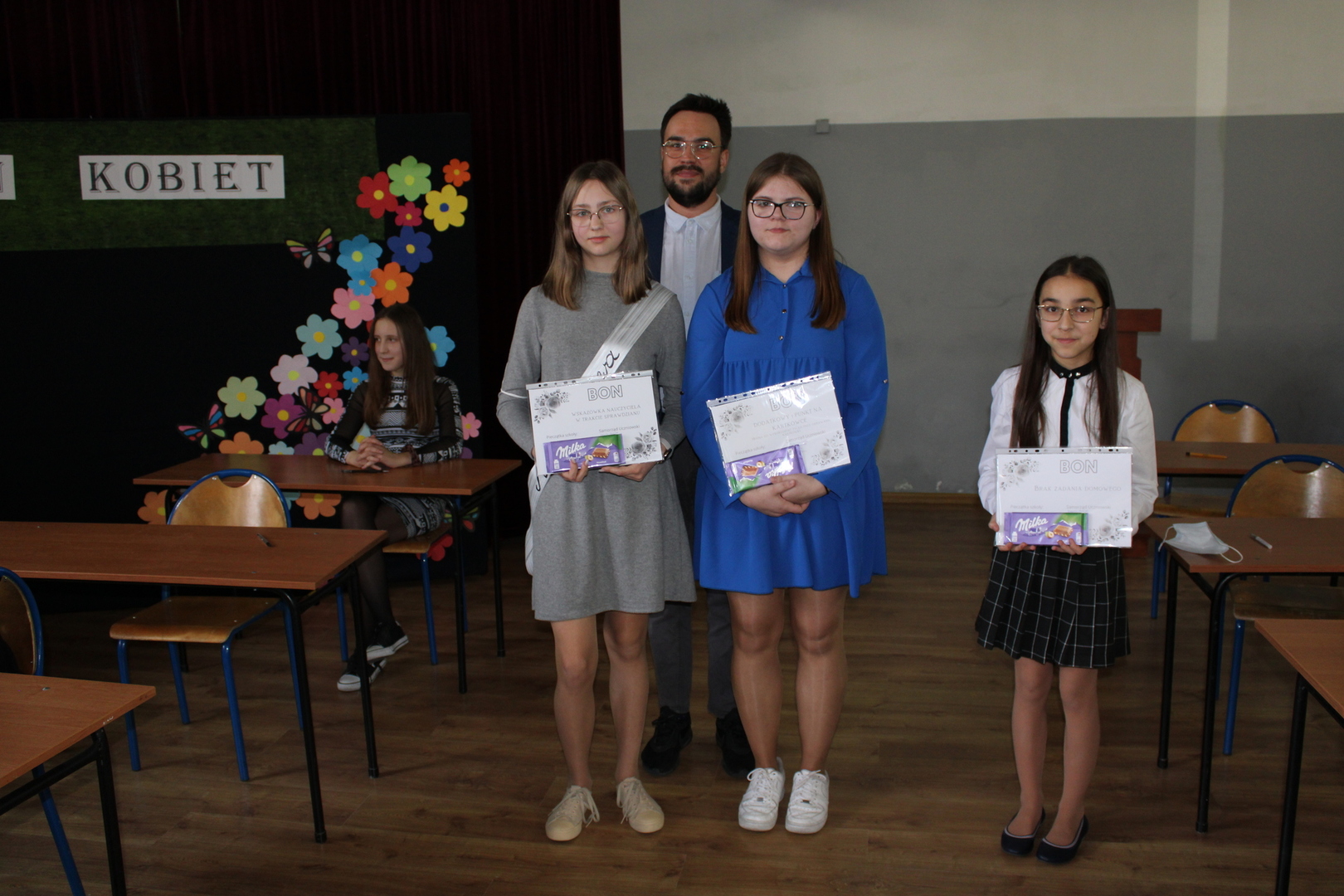 Dziś w szkole świętowaliśmy Dzień Kobiet! Specjalną akademię na tę okazję przygotowała klasa IV pod okiem wychowawczyni p. Ewy Piorun, a za drugą część odpowiedzialny był samorząd uczniowski. Podczas pierwszej części czwartoklasiści w sposób humorystyczny przedstawili relacje damsko-męskie przytaczając różnego rodzaju anegdoty i prezentując zabawne scenki, a podczas drugiej części wyłoniliśmy Miss Błędowa 2022. Miss musiała wykazać się umiejętnością wiązania krawatów czy składania t-shirtów, ale również rozwiązać quiz dotyczący typowo męskich tematów (np. piłki nożnej czy motoryzacji) oraz wykazać się wiedzą ogólną.