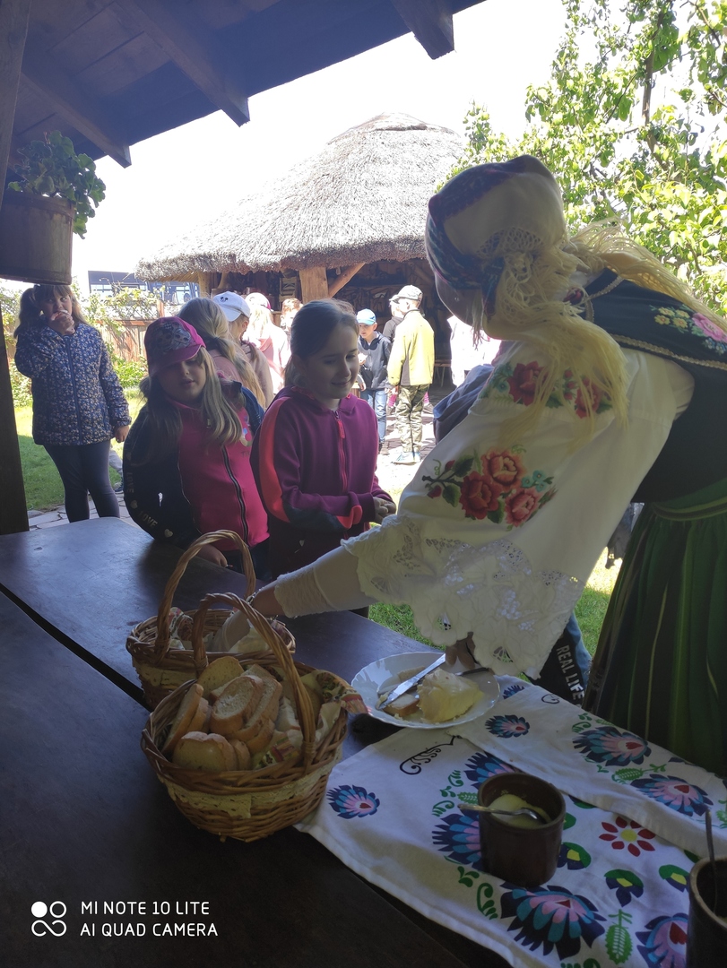 Dnia 18 maja br. uczniowie klas I-III naszej szkoły wraz z wychowawcami uczestniczyli w warsztatach z produkcji tradycyjnych wyrobów dawnej wsi łowickiej.